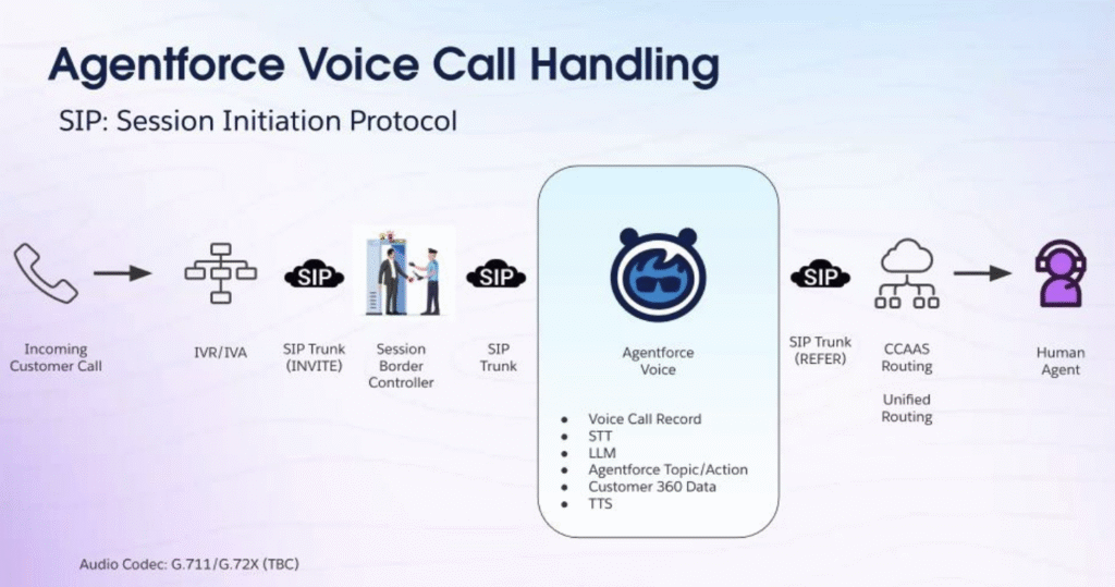Agentforce Voice is an AI voice assistant built inside Salesforce. It listens, understands, and responds to customers on phone calls. The best part: It talks like a real person and uses your Salesforce data to give accurate answers. This means your support team handles fewer basic calls, and customers get faster service.