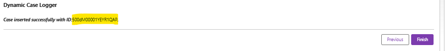 - Shows a confirmation message including the new Case ID