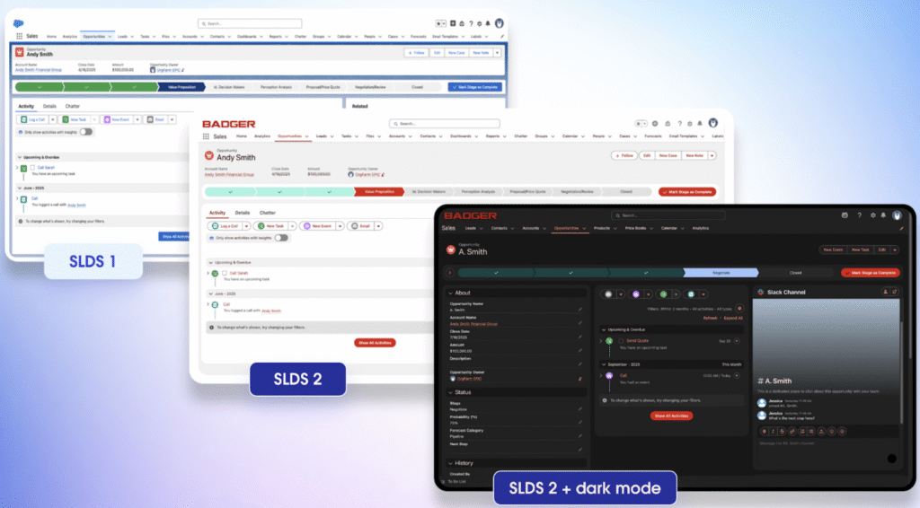 - Future readiness: SLDS 2 makes the UI easier to evolve, so Salesforce can deliver new features faster.