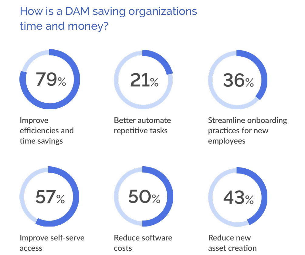 Recent findings from the MediaValet 2025 DAM Trends Report highlight how widespread these inefficiencies are. The report shows that 79% of organizations using a Digital Asset Management (DAM) solution improve efficiencies and achieve measurable time savings.