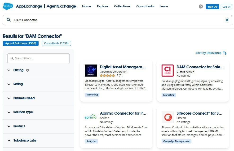 When teams start looking for a way to link the Salesforce Marketing Cloud with their existing asset libraries, the AppExchange is often the first place they check. It helps them quickly find and install an out-of-the-box solution that is native to Salesforce, instead of using third-party integrations built through APIs with external platforms or fully custom setups.