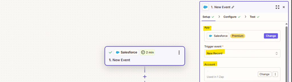 - Give the Zap a descriptive name, like “Salesforce Event → Google Calendar”.