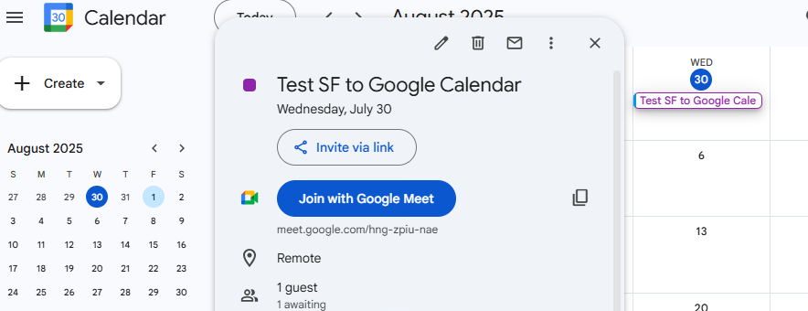Most sales teams live by their calendars: a clear, up‑to‑date schedule helps reps prepare for client calls, internal reviews or strategy sessions. By default, Salesforce Events exist only inside Salesforce; the rep still has to copy meeting details into Google Calendar to get notifications or share invites with colleagues.