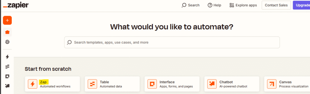 Once signed in, it will land on the Zapier dashboard the launching point for all the automations (a.k.a. “Zaps”).