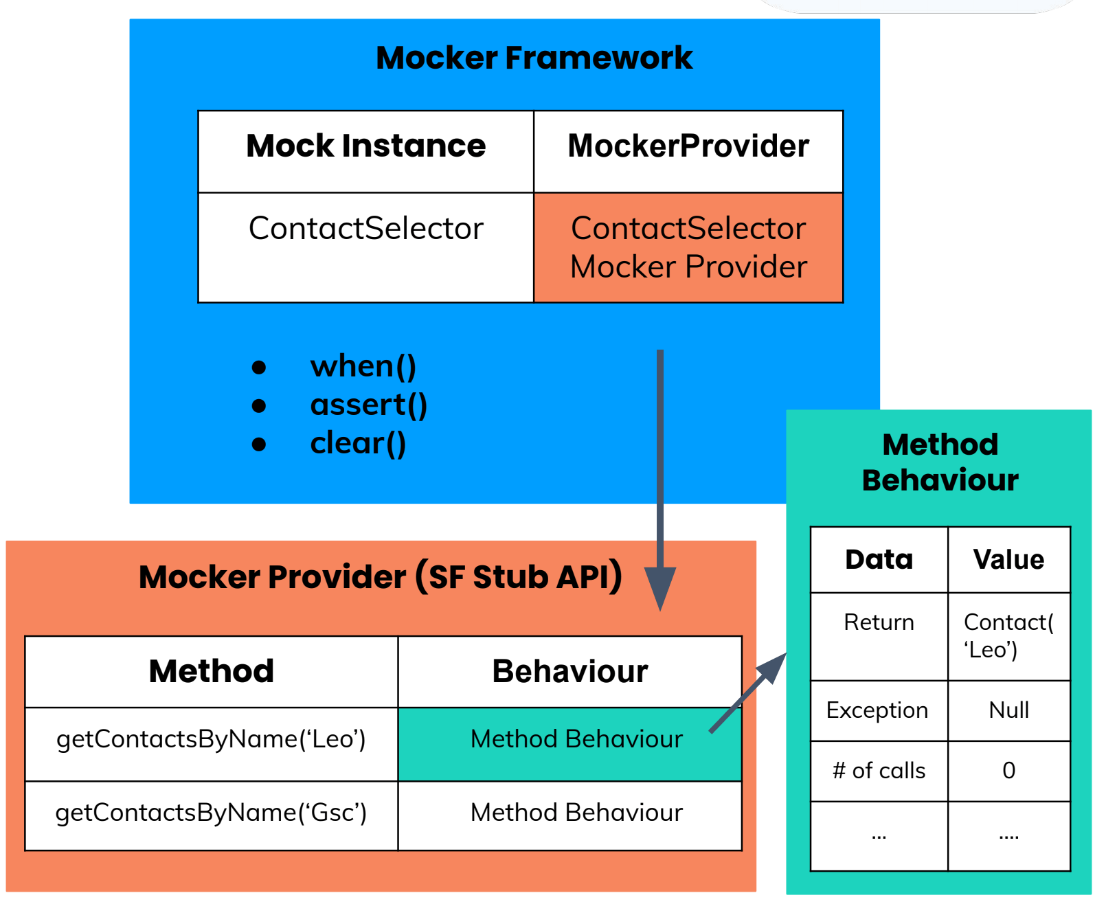 The Mocker Framework, It encapsulates the STUB API complexity exposing an easy-to-use fluent interface. It records the expected mock behavior and replicates this behavior during the test execution phase. It also collect the execution statistics that can be asserted on the assertion phase.