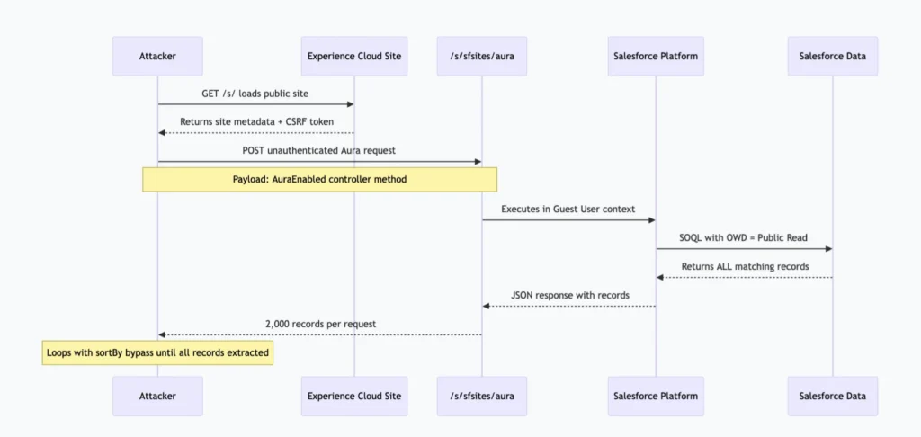 Researchers at AppOmni identified hundreds of public-facing Experience Cloud sites leaking customer records — often millions of them — through the unauthenticated Aura API endpoint at