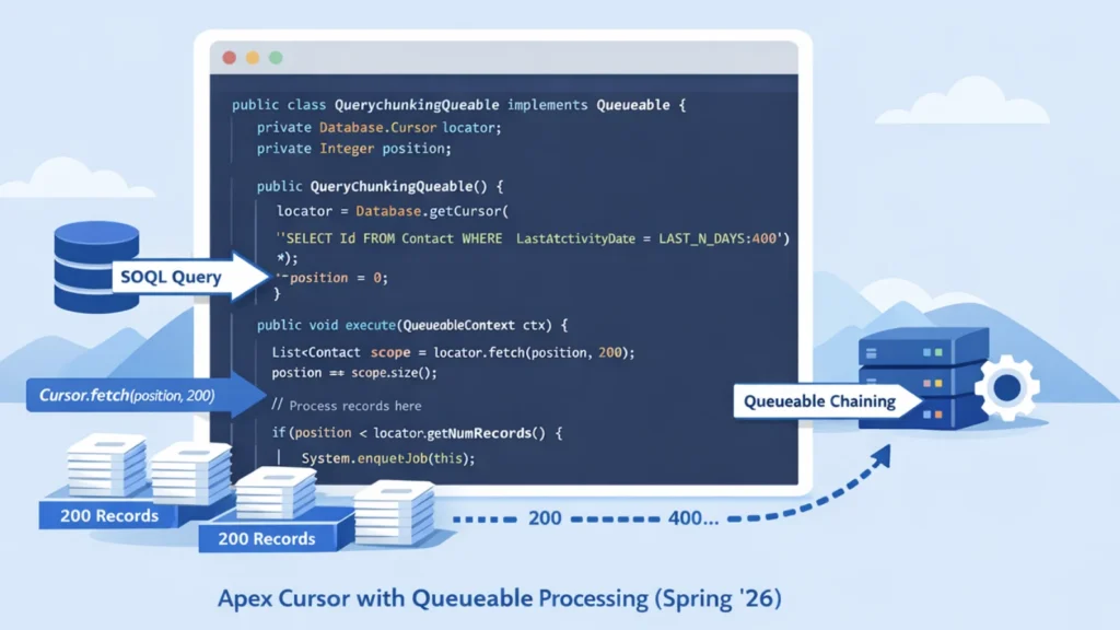 Salesforce Spring ’26: Apex Cursors Explained for Large SOQL Processing