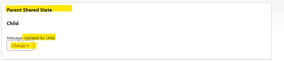 - When the user clicks Change It, the child dispatches a change event with a new value.