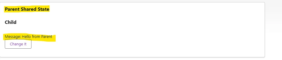 We will build a parent that holds a message string and a child that displays it and can request the parent to change it.
